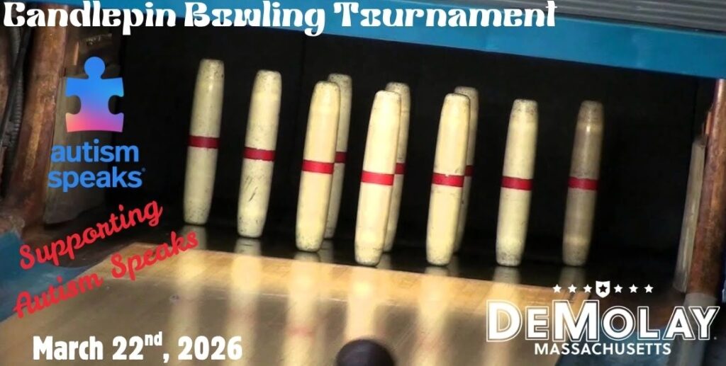 Dust off those bowling shoes, the Massachusetts DeMolay Charity Candlepin Tournament is coming fast on Sunday, March 22 nd, 2026! This year, we have 20 lanes rented out at Metrobowl in Peabody (63 Foster St #1, Peabody, MA 01960) to ensure that everyone can compete and raise as much as possible to support Autism Speaks. The first frame starts promptly at 1:00 p.m., so be sure to get there ahead of time to get your shoes and get settled in your lane.
