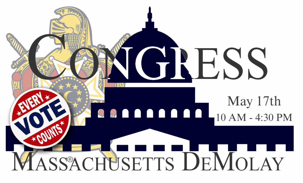 Join Massachusetts DeMolay on May 17th, 2026 10 AM to 4:30 PM at the Grand Lodge of Masons of Massachusetts for Congress! The membership of Massachusetts DeMolay will be voting on proposed changes to our State Constitution. There will be a double degree for new members, as well as lunch served for all who attend.